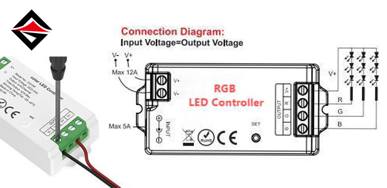 Müvafiq olaraq idarəediciyə uyğun qırmızı, yaşıl və mavi terminallara yüngül, yaşıl və mavi terminallara qədər qırmızı (r), yaşıl (g) və mavi (b) xətlərini birləşdirin.